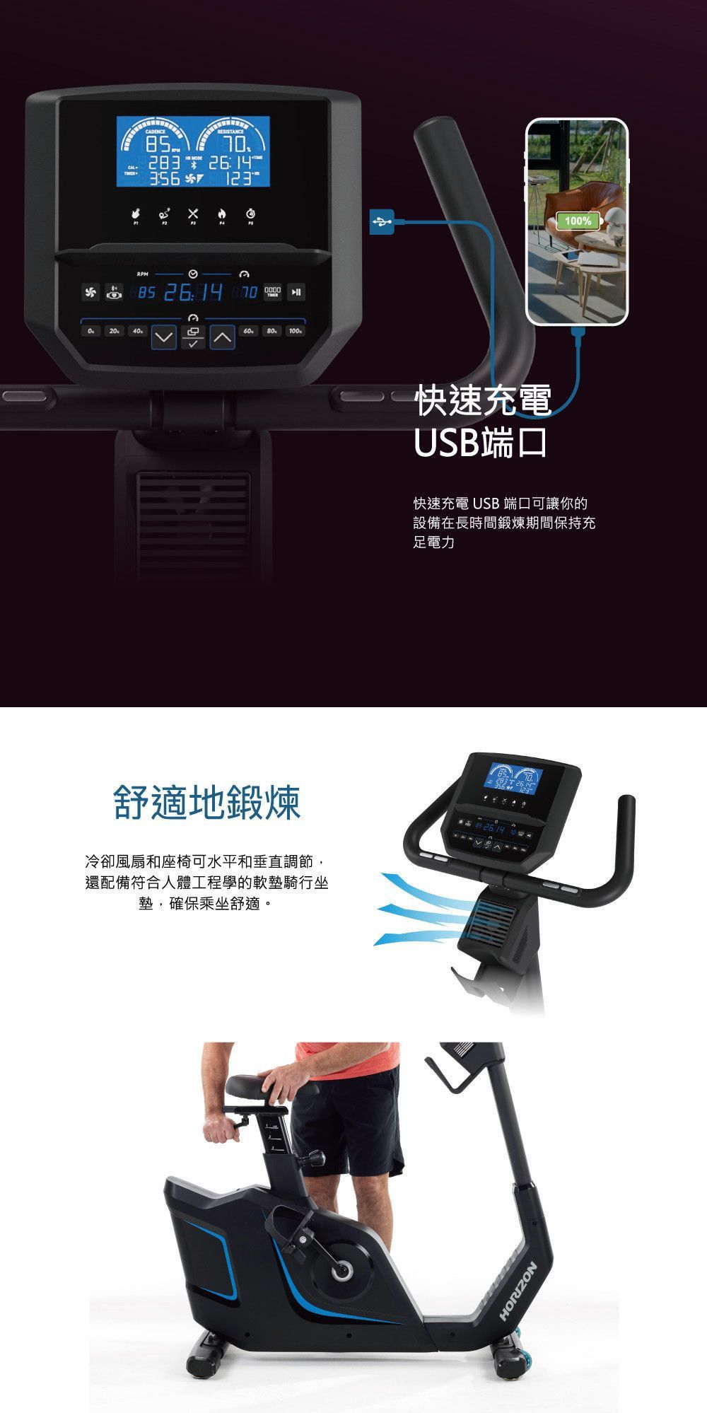 娛樂功能 可放置智慧型裝置閱讀架、適用多款熱門健身APP