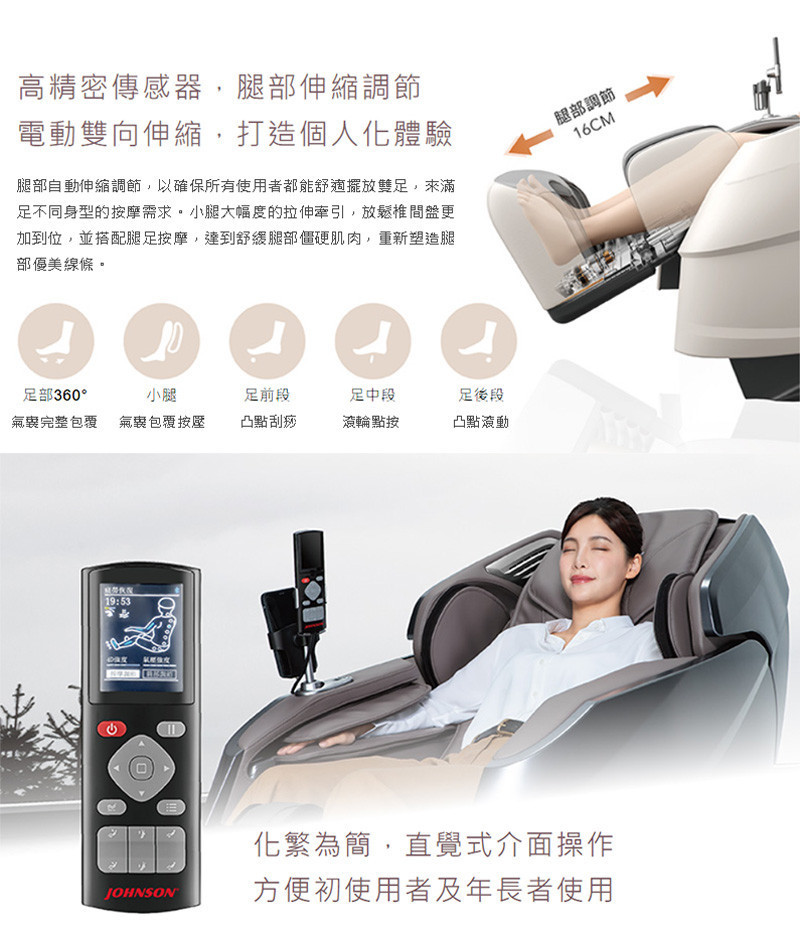 .電動雙向腿部伸縮調節,滿足不同身型需求