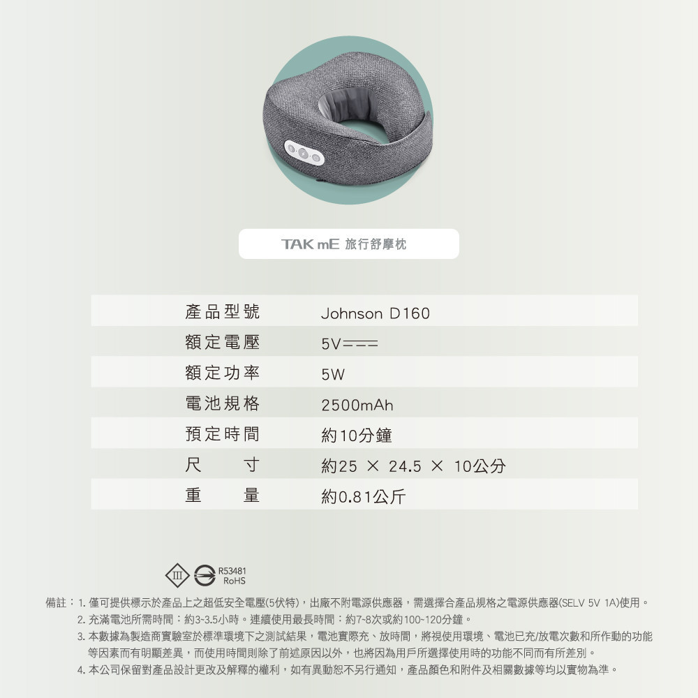 喬山 JOHNSON 旅行舒摩枕 D160︱TAKmE帶著走