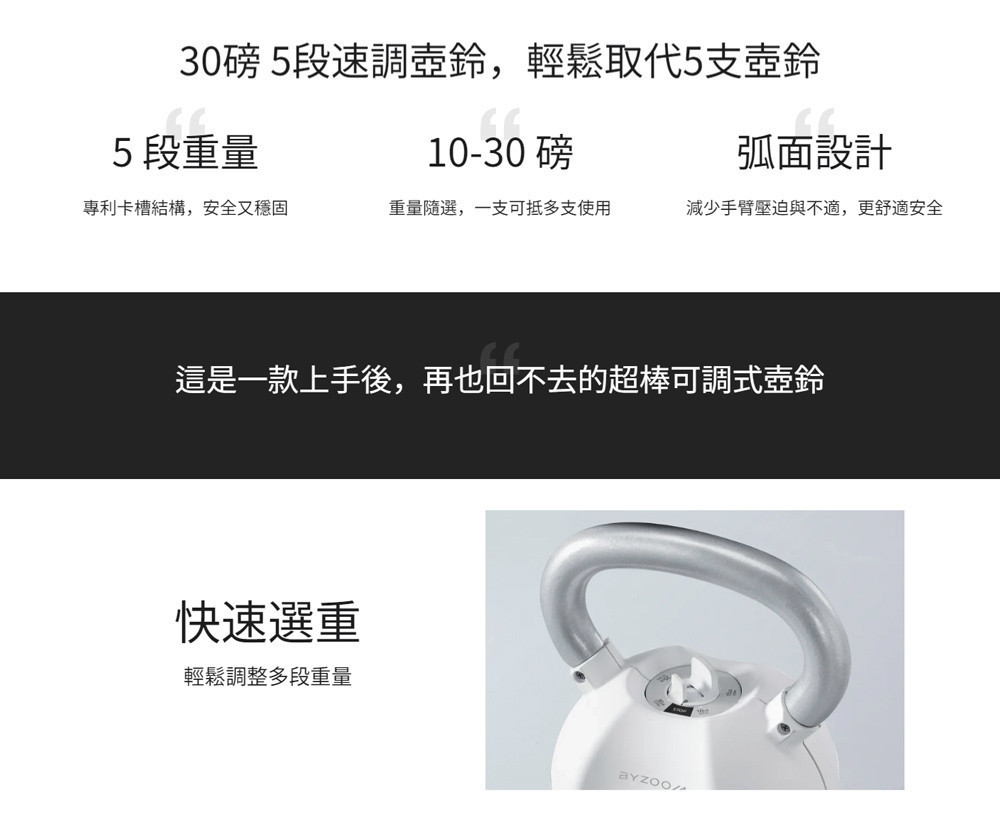 5段重量秒速調整,5 in 1 調整壺鈴