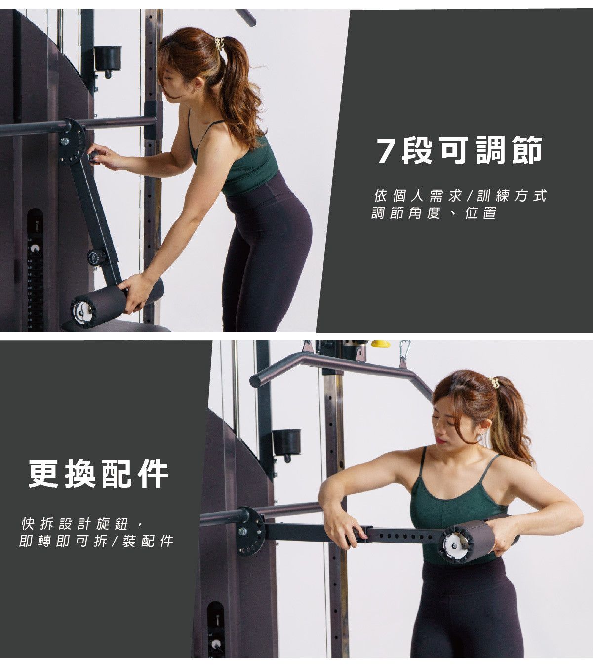 ※ 建議使用空間: 深 230 x 寬 230 x 高 230 cm (含使用訓練椅 / 輔助腰靠背墊,不含自由槓使用空間) ※