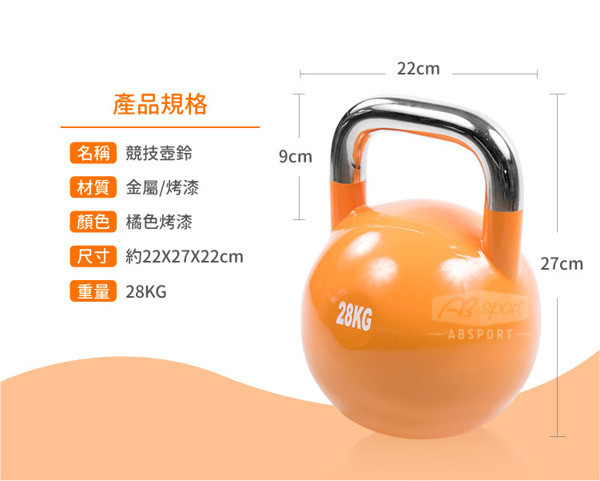 - 競技壺鈴每個公斤數的把手大小、體積相同。