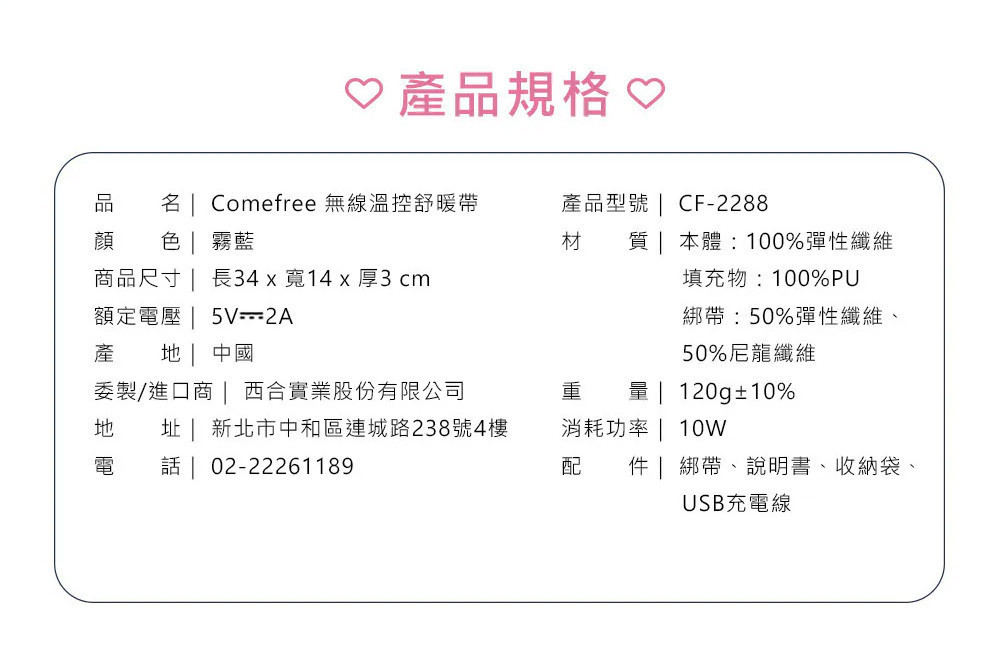Comefree ,無線溫控舒暖帶,Comefree CF2288,石墨烯發熱帶,真無線暖帶,三段溫控暖帶,居家保暖帶,雙層綁帶加熱帶,肩頸腰暖帶推薦