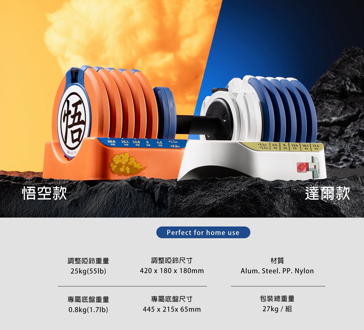 七龍珠聯名 Pure Series 55LB (25kg)可調式啞鈴[組合] 含啞鈴放置架 達爾款