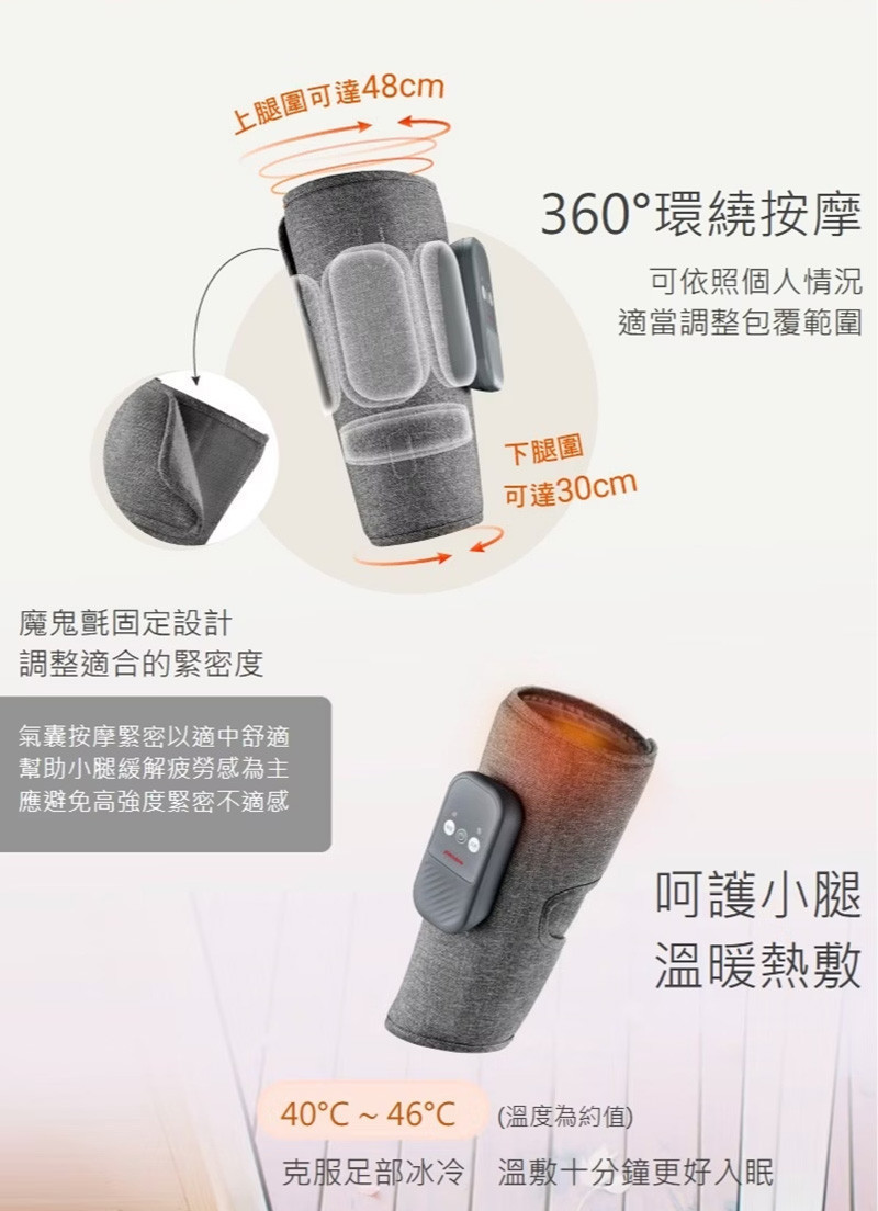 .360環繞式氣囊,完整包覆小腿肚