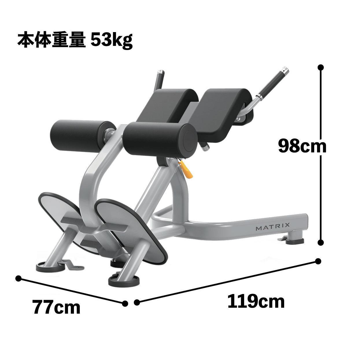 Magnum 背部伸展訓練架是設計來進行腹部、背部和其他核心肌群的訓練。大型大腿靠墊和防滑踏墊能提升穩定度和舒適度。此外,訓練架的傾斜設計讓使用者易於進出。