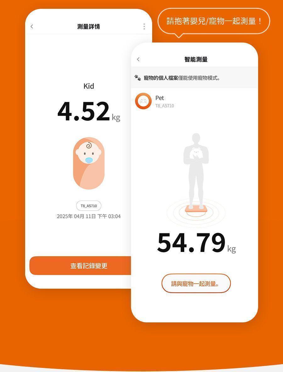 • 嬰幼兒、寵物也可以紀錄體重數值