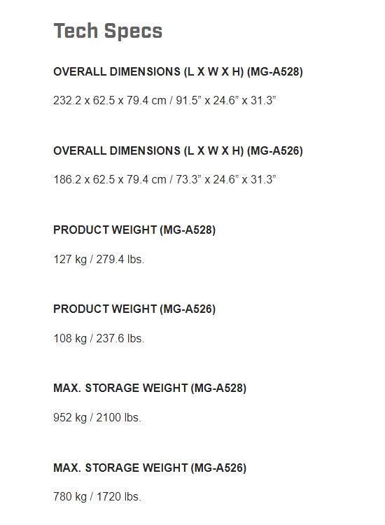 選購配備包括用於存放壺鈴的 15 度平面轉換器(MG-AO15T 用於頂部托盤,MG-AOT5B 用於底部托盤)、