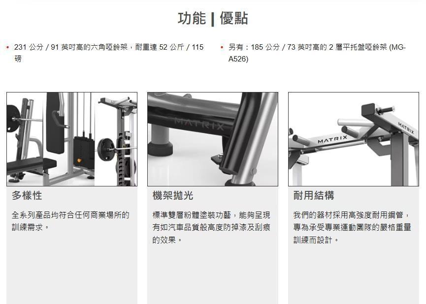 MG-AORM8 用於 MG-A528 啞鈴架)、印花護墊 (MG-AODS) 以及可讓您連接多個架子的連接板 (MG-AOCP)。